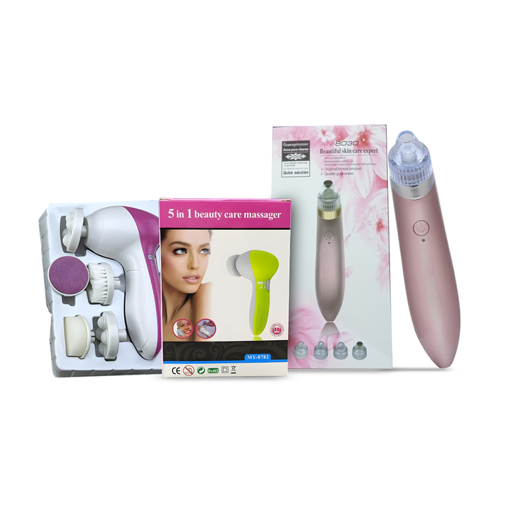 Acne Pore Cleaner (XN-8030) — Rechargeable device with four suction heads to tackle blackheads, acne, and wrinkles. Delivered with filters, USB charger, and interchangeable tips.